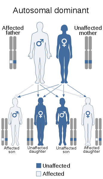 DM1 and DM2 are inherited in an autosomal dominant manner. This means that a child only needs to receive one copy of the defective gene from one of their parents to inherit the disease. Either parent can pass on the defective gene. The parent who passes on the defective gene will have the disease himself or herself, but might not show symptoms. It is important to trace the path of the disease through the family to minimise its impact on future generations, and to identify family members who might be at risk of developing symptoms.